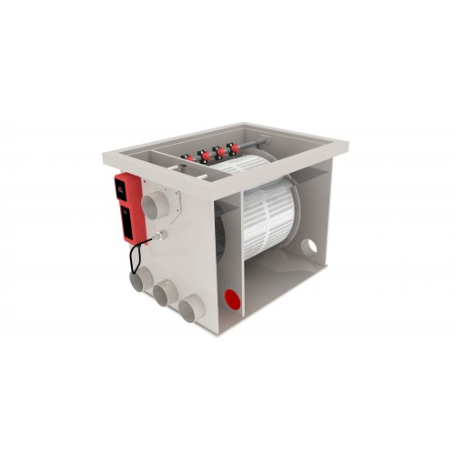 Pe măsură ce gradul de murdărire crește, pânza filtrantă se colmatează și permite trecerea unei cantități mai mici de apă. Drept urmare, nivelul apei din exteriorul pânzei scade. Când apa ajunge sub un nivel presetat, acest lucru este detectat de un plutitor, iar ciclul de spălare este activat.