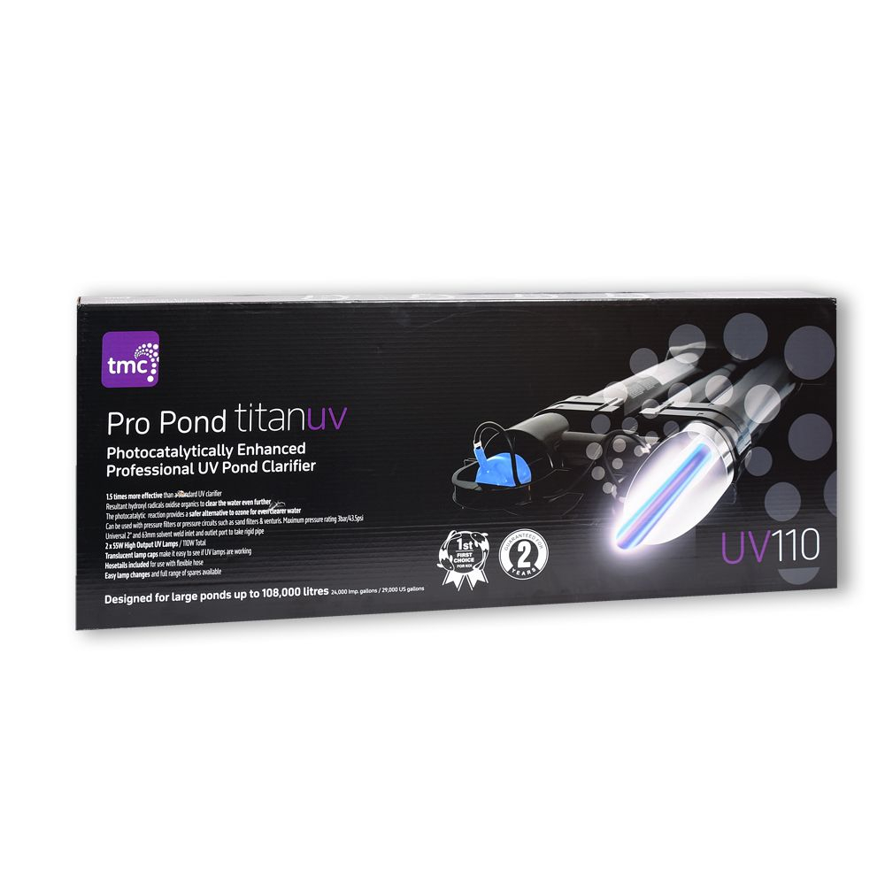 Proiectat pentru iazuri mari și instalații grele, Pro Pond titanUV 110W combină două lămpi UV-C Hyperion de 55W și o căptușeală fotocatalitică de înaltă performanță pentru un control suprem al apei verzi. Tratând iazuri de până la 108.000 de litri cu un debit maxim de 25.000 l/h, această unitate este concepută pentru claritate, fiabilitate și liniște sufletească. Ușor de instalat, cu orificii de sudură cu solvent și racorduri incluse. Clarificator de iaz de capacitate maximă – Gestionează cu ușurință iazuri de până la 108.000 l. Sistem UV-C cu două lămpi – Lămpi Hyperion duble de 55W pentru oxidare îmbunătățită. Design îmbunătățit al debitului – Apa curge pe lângă ambele lămpi pentru o expunere optimă. Construcție rezistentă – Greutate de 4 kg, grad de protecție IP64, cu sudură cu solvent și racorduri pentru furtun. De încredere pentru profesioniști – Include cablu de 5 m, întreținere redusă, fabricat în Marea Britanie.