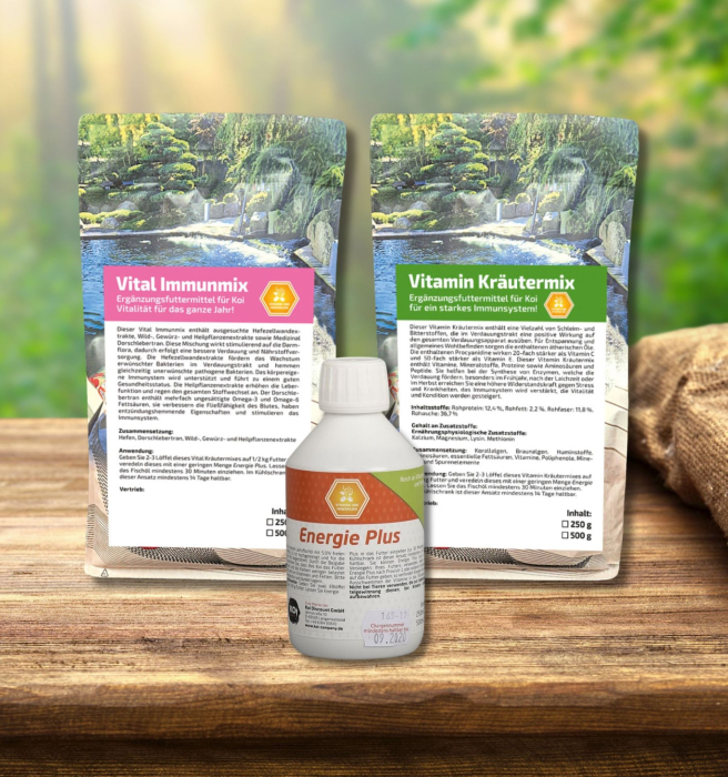In timpul sezonului rece și al perioadei de tranziție de primăvară, este esențial să oferiți peștilor dumneavoastră toată energia pe care o pot obține. Am creat un pachet format din Mixul de Vitamine cu Herbe, Mixul Vital pentru Imunitate și Energy Plus pentru un plus de grăsime. Presărați câteva dintre plante pe hrana lor și suplimentați cu Energy Plus.