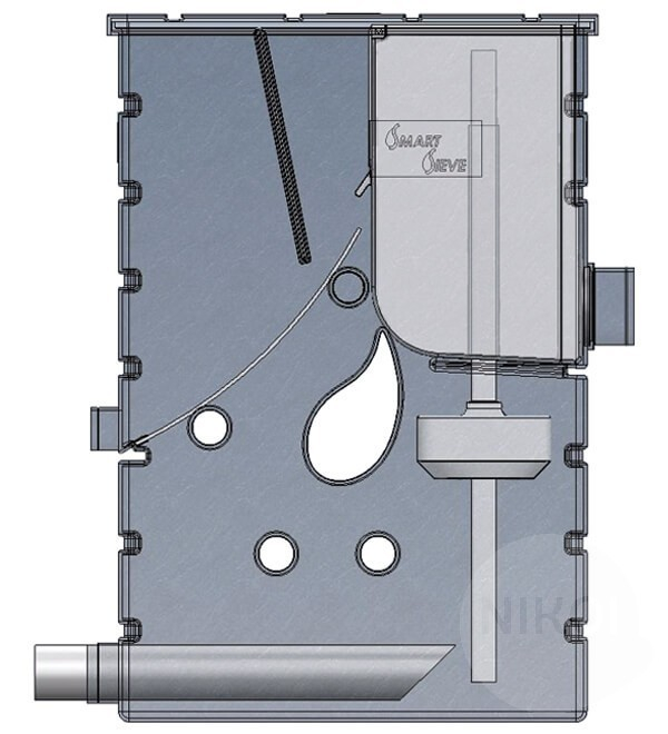 Un sieve foarte ieftin fabricat din polietilena ce contine o sita de 300 microni. Intrari 2 x110 mm Iesire pompa 90/63 mm Iesire mizerie 63 mm Se poate folosi o pompa de maxim 25000 l/h https://www.youtube.com/watch?v=FFjd_K2klu8