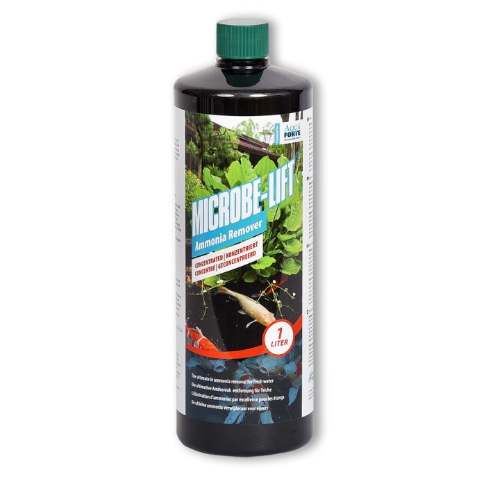 O sticlă este suficientă pentru un volum de iaz de 45.000 de litri. Microbe-Lift Ammonium Entferner neutralizează amoniul toxic, cloramina și clorul. Sigur pentru toate vietățile din iaz.